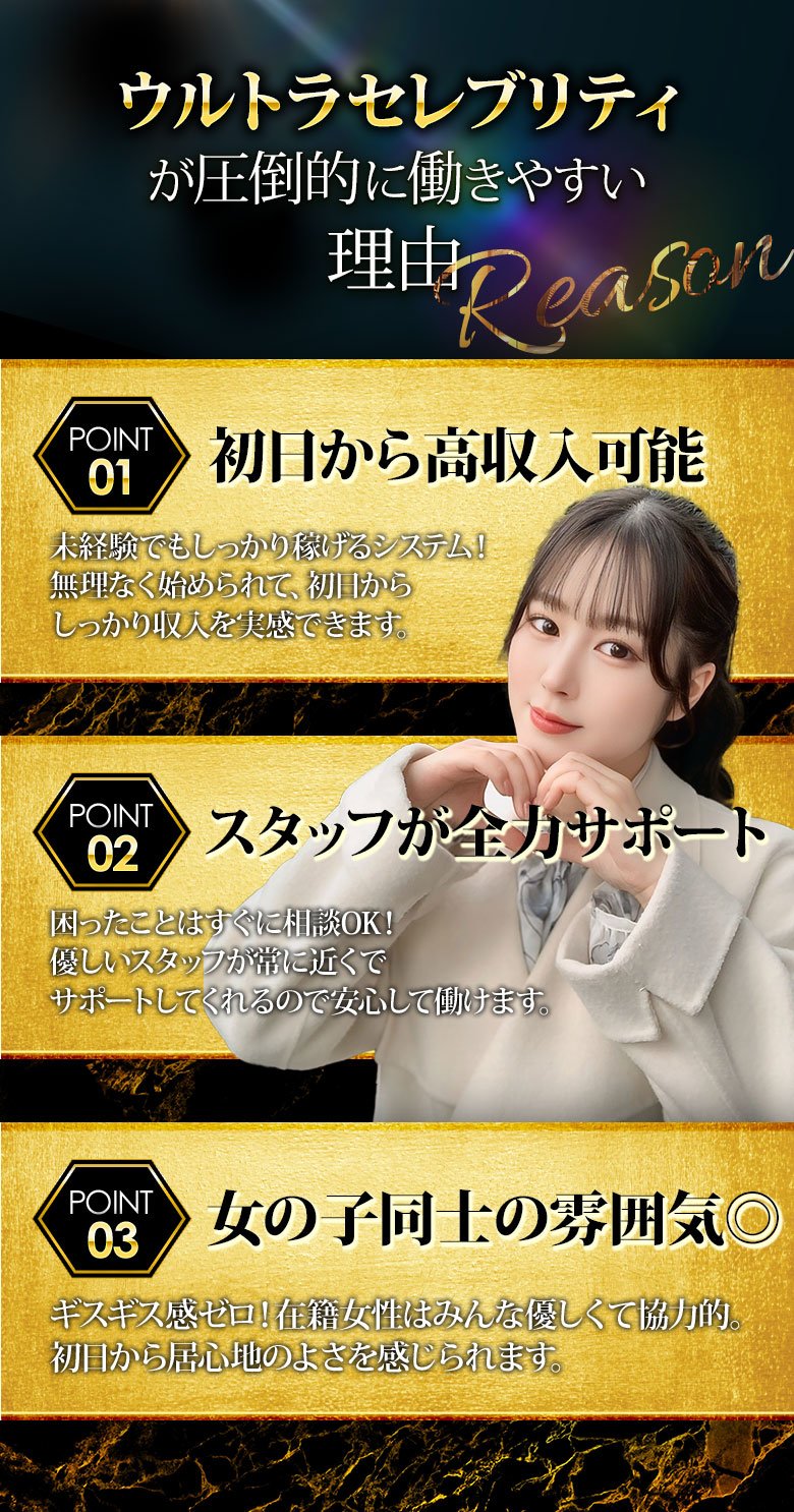 最初は緊張していましたが、スタッフさんが優しくフォローしてくれて、安心してお仕事が出来ました。お客様も紳士的な方ばかりで、落ち着いて接客できました。思っていた以上に稼げたのも嬉しかったです。1日があっという間で、次回の出勤も楽しみです。