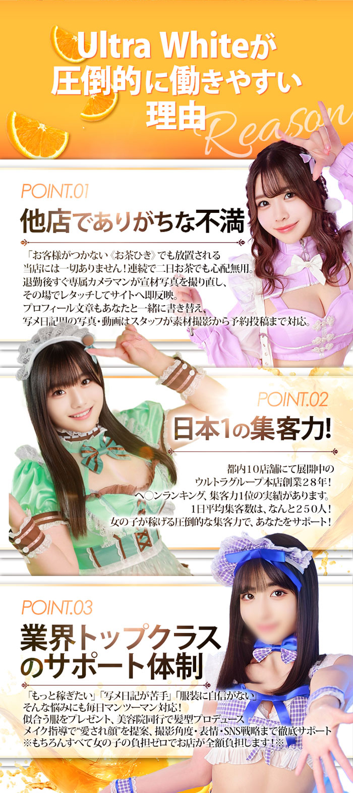 未経験でも、経験者の方でも、しっかり稼げる場所がウルトラホワイトです♪
